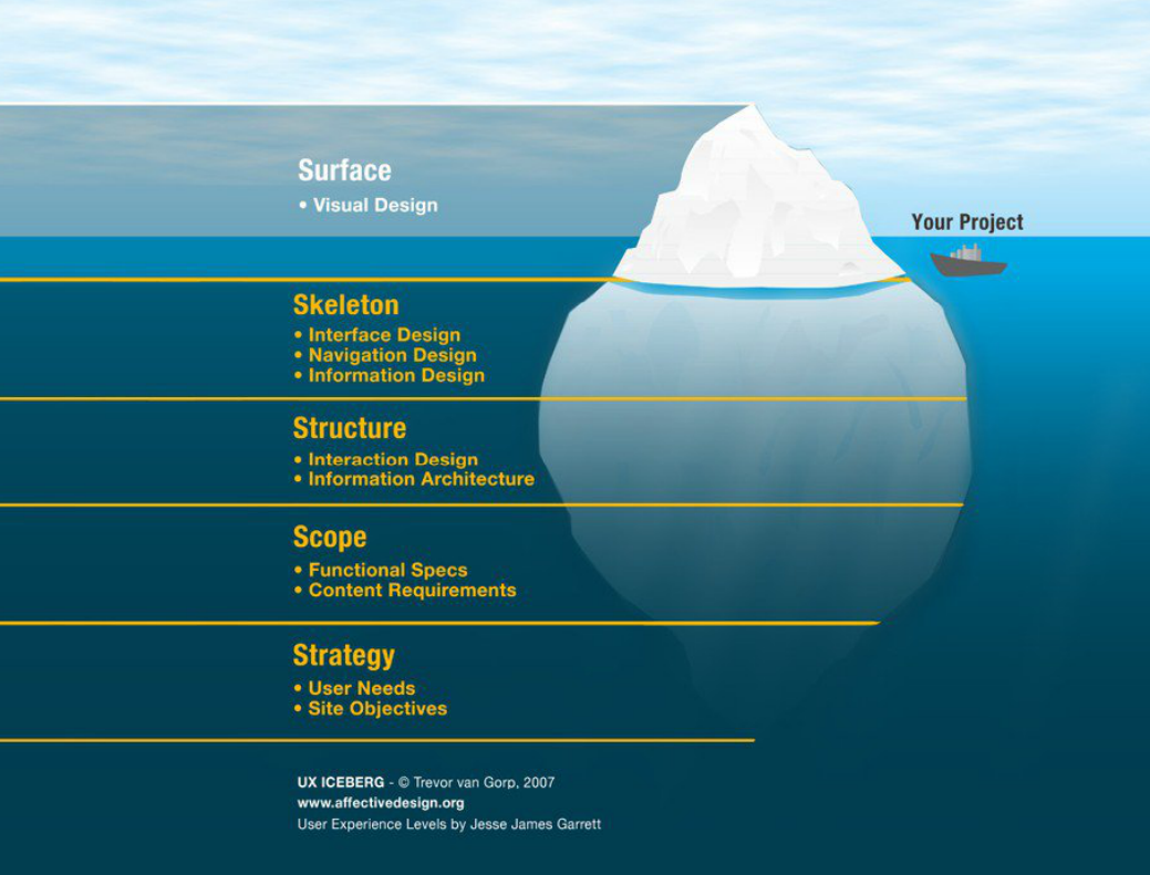 Scriptutex > Blog > Os 5 níveis do processo de UX Design > processo de ux design iceberg de trevor