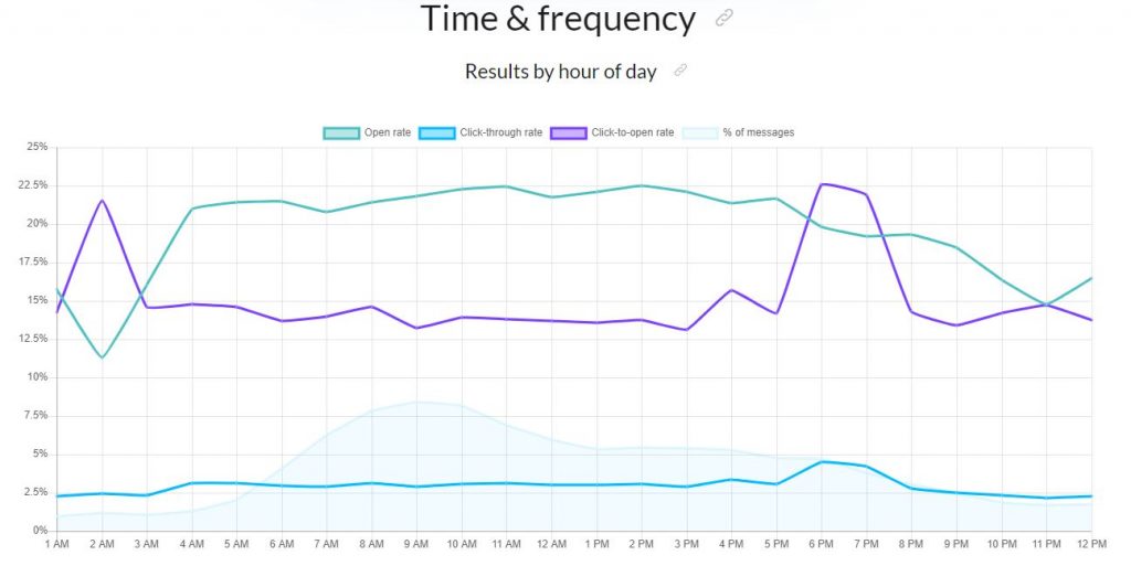 Subscribers usually open the emails they see first. So when to submit campaigns? Data show that the best hours to send are between 9 am and 11 am and between 2 pm and 5 pm.